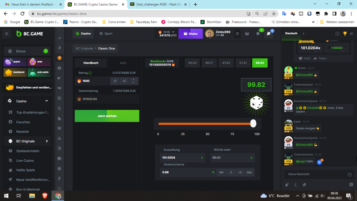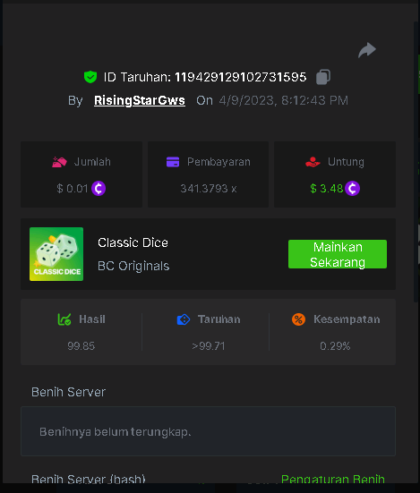 Maksypro Posted April 9, 2023 Share Posted April 9, 2023 (edited) Read Carefully Before Start To Hunt Daily Challenges #200 CLASSIC DICE Hunt : Win the highest multiplier Min Payout requirement 100x Min Level 4 ️Duration Starting : Now End time : 23.59 UTC Time How to Join? Make screenshot + paste your bet link + UID or Profile link Any coin, with min bet 0.01 USD is allowed (jb/bb/bcl not allowed) Reward Prizes 1st Place........$7 BCD 2nd Place.....$5 BCD 3rd Place......$4 BCD 4th Place.....$3 BCD 5th Place.....$2 BCD 🏵 Winners will be announcing next day after Roll Point! Edited April 9, 2023 by Maksypro 1 Link to comment Share on other sites More sharing options...