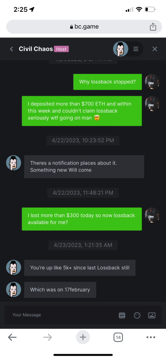 Deep4788 Posted April 24, 2023 Share Posted April 24, 2023 meanwhile a player can’t claim lossback if lost 7 days ago but bc.games can reject lossback because few months ago that player won . So I feel that is such a shame for so called Number 1 Casino in the world such a shame, for bc.games. I add screenshots of conversation with my host. Link to comment Share on other sites More sharing options...
