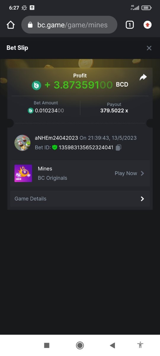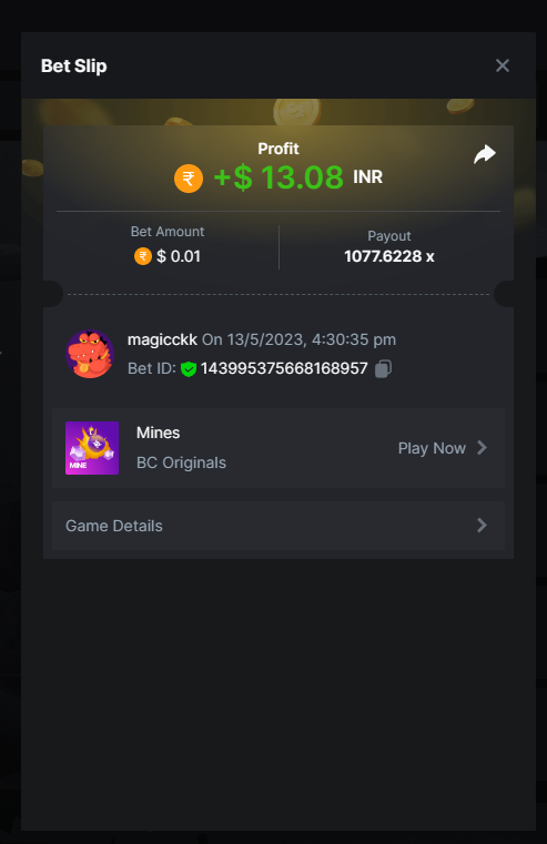 Maksypro Posted May 13, 2023 Share Posted May 13, 2023 Read Carefully Before Start To Hunt Daily Challenges #234 MINES Β Hunt : Win the highest pay out Min Payout requirement 100x Min Level 4 οΈDuration Starting : Now End time : 23.59 UTC Time How to Join? Make screenshot + paste your bet link + UID or Profile link Any coin, with min bet 0.01 USD is allowed (jb/bb/bcl not allowed) Reward Prizes 1st Place.....$7 BCD 2nd Place.....$5 BCD 3rd Place.....$4 BCD 4th Place.....$3 BCD 5th Place.....$2 BCD π΅ Winners will be announcing next day after Roll Point! Link to comment Share on other sites More sharing options...