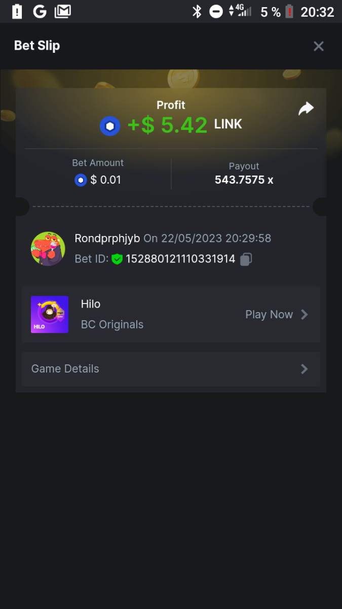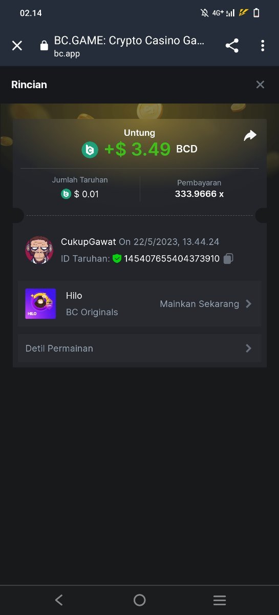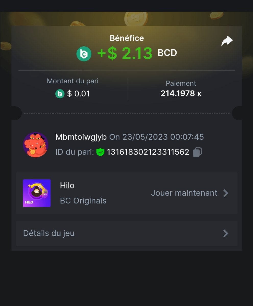 Maksypro Posted May 22, 2023 Share Posted May 22, 2023 Read Carefully Before Start To Hunt Daily Challenges #243 ย HI-LO Hunt : Win the highest pay out Min Payout requirement X100 Min Level 4 ๏ธDuration Starting : Now End time : 23.59 UTC Time How to Join? Make screenshot + paste your bet link + UID or Profile link Mini bet amount - 0.01$ Any coin allowed Reward Prizes 1st Place.....$7 BCD 2nd Place.....$5 BCD 3rd Place.....$4 BCD 4th Place.....$3 BCD 5th Place.....$2 BCD ๐ต Winners will be announcing next day after Roll Point! 3 Link to comment Share on other sites More sharing options...