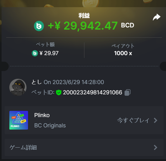 🥇1st    TOSHI  1000x  206$…….. Win 7bcd