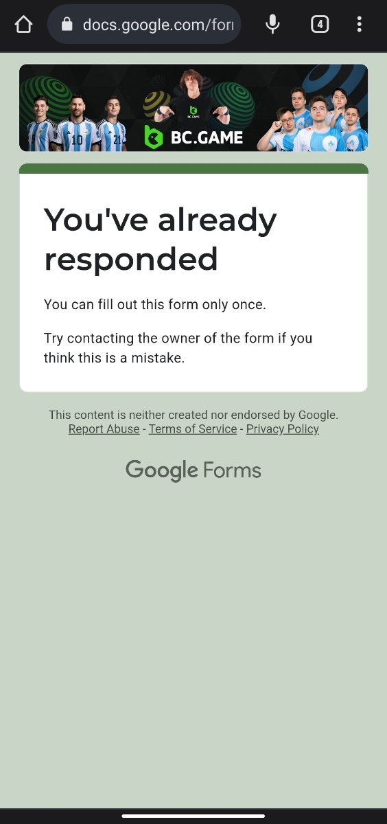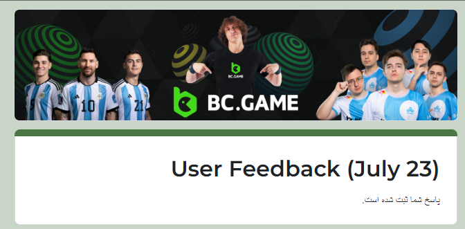 به عنوان تشکر، ما یک هدیه هیجان انگیز برای شما داریم! ما به طور تصادفی 100 کاربر خوش شانس را که نظرسنجی را پر کردند انتخاب می کنیم و هر کدام یک جایزه فوق العاده 5 BCD دریافت می کنند که ظرف 7 روز به حساب BC.GAME شما ارسال می شود. این یک راه ویژه برای جشن گرفتن بازخورد ارزشمند شما است.