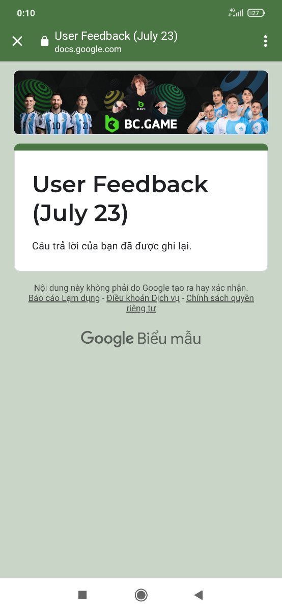 As a thank-you, we have an exciting giveaway for you! We'll randomly choose 100 lucky users who filled out the survey, and each will receive a fantastic 5 BCD reward which will be sent within 7 days to your BC.GAME account. It's a special way to celebrate your valuable feedback.
