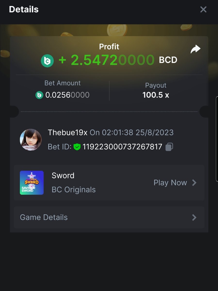 Moderator Giandreas Posted August 24, 2023 Moderator Share Posted August 24, 2023 Read Carefully Before Start To Hunt Forum Daily Challenges #337 SwordHunt : Sword Win the highest pay out Min Payout min 20x Min Level 4️Duration Starting : Now End time : 23.59 UTC Time How to Join? Make screenshot + paste your bet link + UID or Profile link Any coin, with min bet 0.01 USD is allowed (jb/bb/bcl not allowed)Reward Prizes 1st Place.....$7 BCD 2nd Place.....$5 BCD 3rd Place.....$4 BCD 4th Place.....$3 BCD 5th Place.....$2 BCD 🏵 Winners will be announcing next day after Roll Point! Link to comment Share on other sites More sharing options...