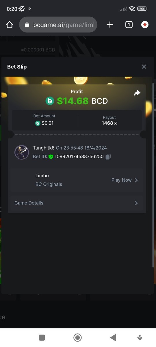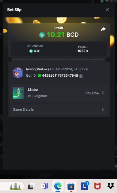 Moderator Giandreas Posted April 19, 2024 Moderator Share Posted April 19, 2024 Read Carefully Before Start To Hunt Forum Daily Challenges #575Hunt : Limbo Win the highest pay out Min Payout : 20x Min Level 10️Duration Starting : Now End time : 23.59 UTC Time How to Join? Make screenshot + paste your bet link + UID or Profile link Any coin, with min bet 0.01 USD is allowed (jb/bb/bcl not allowed)Reward Prizes 1st Place.....$7 BCD 2nd Place.....$5 BCD 3rd Place.....$4 BCD 4th Place.....$3 BCD 5th Place.....$2 BCD 🏵 Winners will be announcing next day after Roll Point! 1 Link to comment Share on other sites More sharing options...