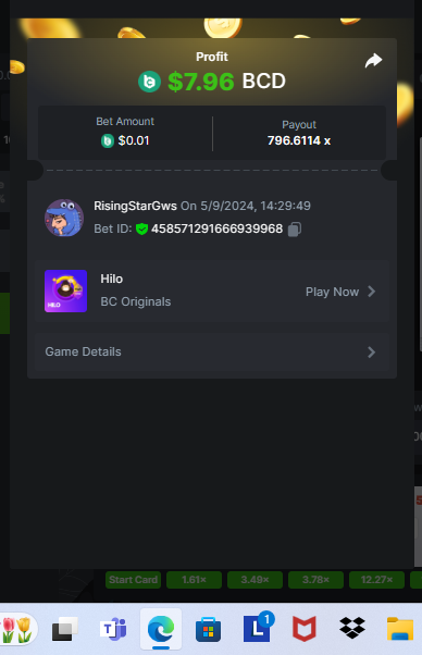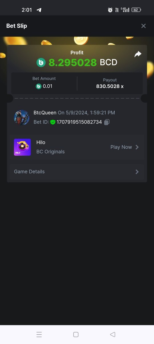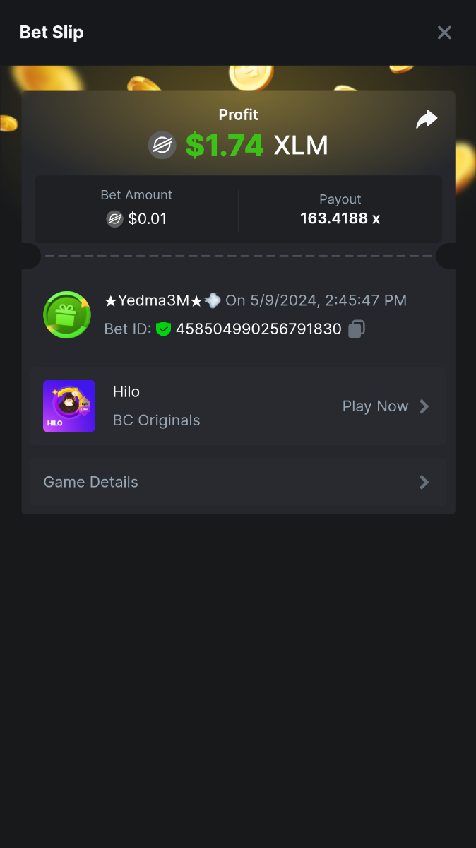 Moderator Giandreas Posted May 9, 2024 Moderator Share Posted May 9, 2024 Read Carefully Before Start To Hunt Forum Daily Challenges #595Hunt : HiLo Win the highest pay out Min Payout : x20 Min Level 10 ️Duration Starting : Now End time : 23.59 UTC Time How to Join? Make screenshot + paste your bet link + UID or Profile link Any coin, with min bet 0.01 USD is allowed (jb/bb/bcl not allowed) Reward Prizes 1st Place.....$7 BCD 2nd Place.....$5 BCD 3rd Place.....$4 BCD 4th Place.....$3 BCD 5th Place.....$2 BCD 🏵 Winners will be announcing next day after Roll Point! 1 Link to comment Share on other sites More sharing options...