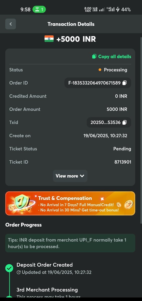 DIBYA07 Posted June 19 Share Posted June 19 Deposit not received help me Link to comment Share on other sites More sharing options...