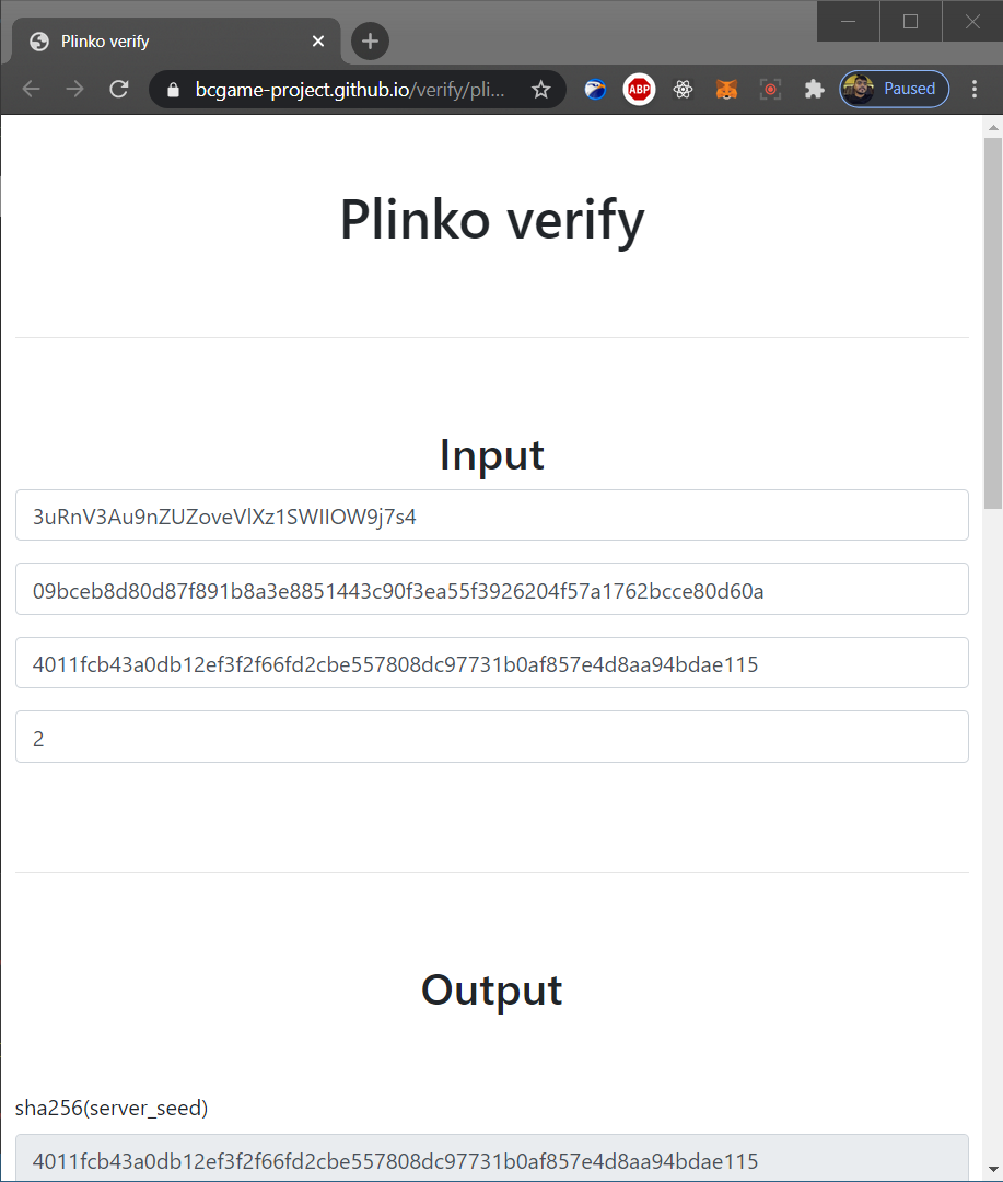 Admin Coco_o Posted August 21, 2020 Admin Share Posted August 21, 2020 On 8/15/2020 at 12:45 PM, davidsilvarao443 said: Plinko is also verified using provably fair verification tool. Kindly review. https://provably-fair.github.io/bc.game/ @Coco_Father where is the final result Link to comment Share on other sites More sharing options...