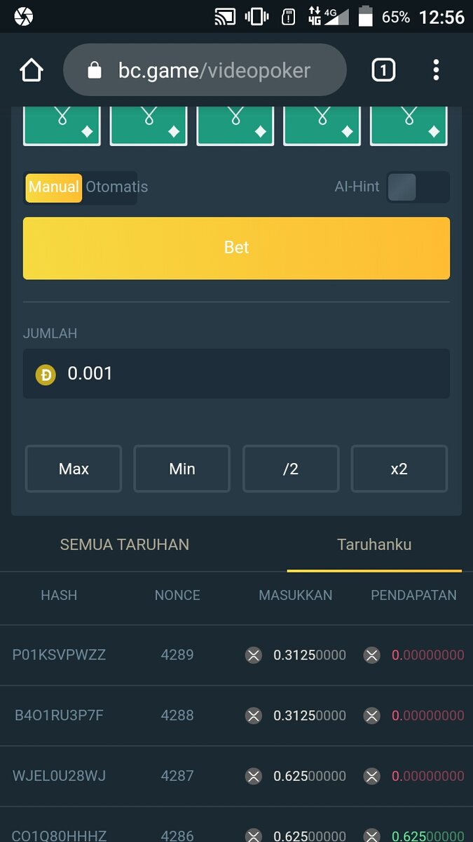 I get a lot of bugs dipoker I often get a royal flush card but it always clicks error and I have gotten 100x bad cards for 1 hour to get my full house. it took 5 hours to play please admin to check video poker games for the sake of the convenience of the players playing I never won here even though I won I always play play until I run out of lots of money I know you need to eat. but it would be nice for you to make a fair game so that everyone feels at home here