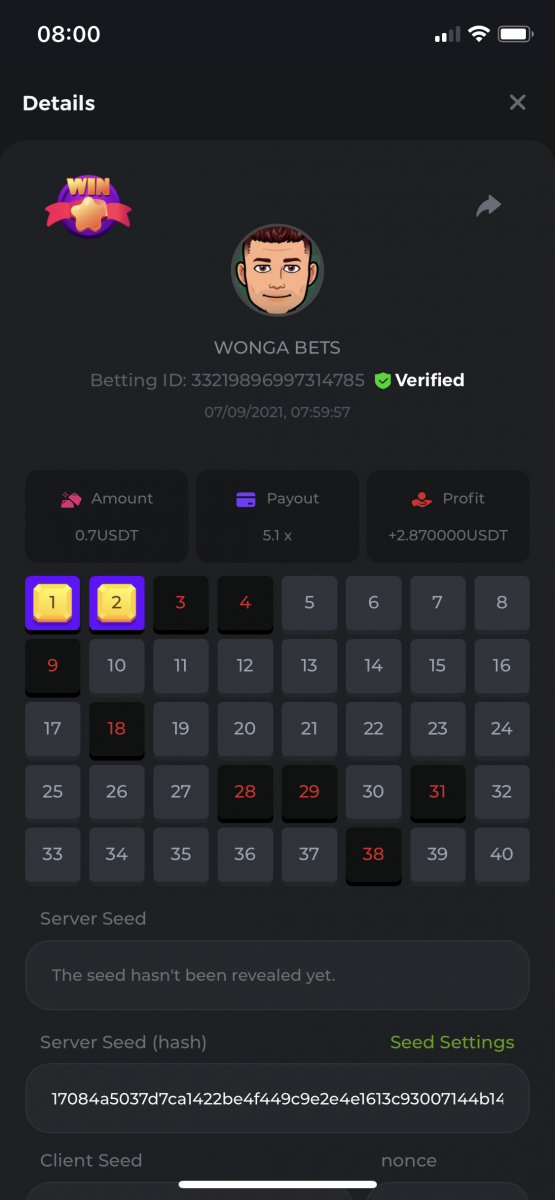 • In the same post, upload a screenshot of your win by clicking the game ID WITH VIEW IN USD mode ENABLED (accessible at the bottom of dropdown menu for your wallet up top. This way, we can ensure that your bet indeed met the minimum requirement at the time of placing it: