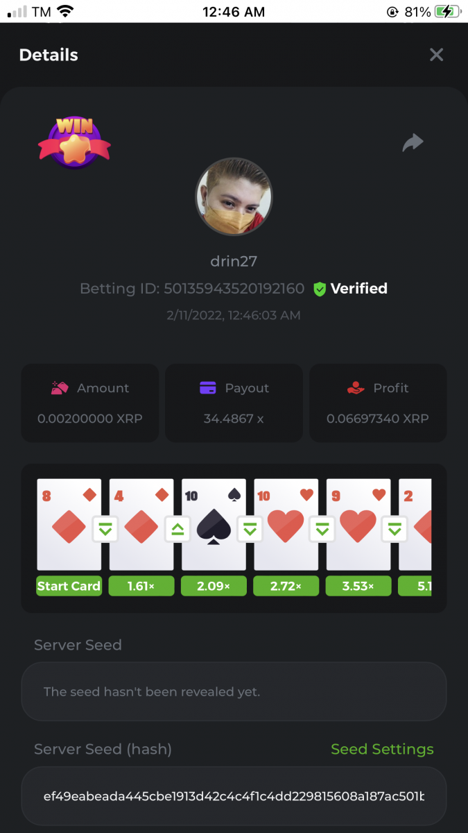 • In the same post, upload a screenshot of your win by clicking the game ID WITH VIEW IN USD mode ENABLED (accessible at the bottom of dropdown menu for your wallet up top. This way, we can ensure that your bet indeed met the minimum requirement at the time of placing it: