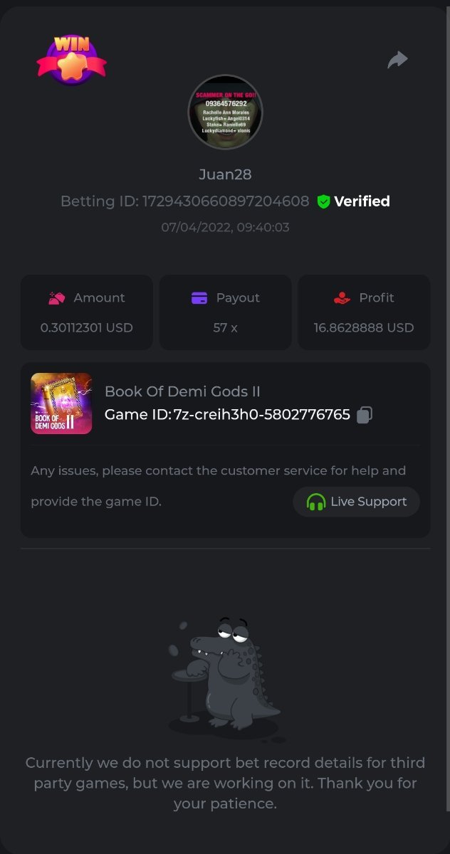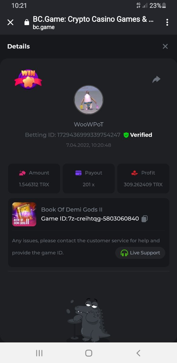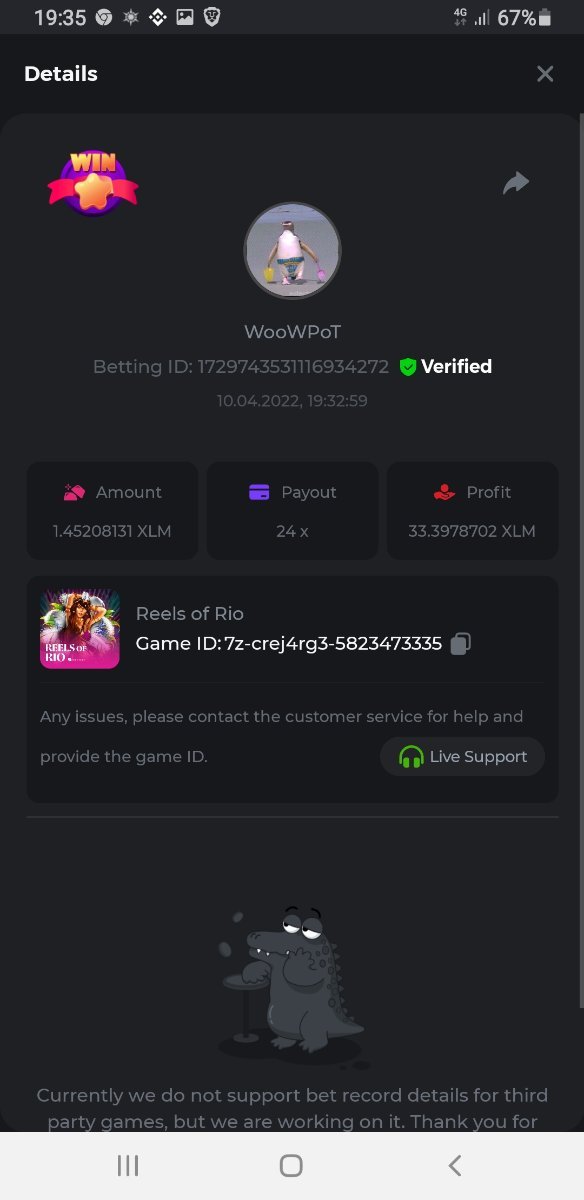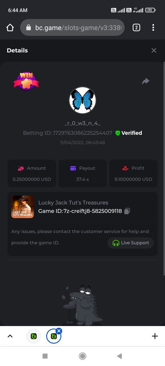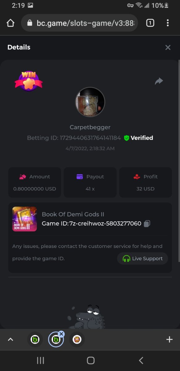 • In the same post, upload a screenshot of your win by clicking the game ID WITH VIEW IN USD mode ENABLED (accessible at the bottom of dropdown menu for your wallet up top, and Submit Reply. Done! This way, we can ensure that your bet indeed met the minimum requirement at the time of placing it: