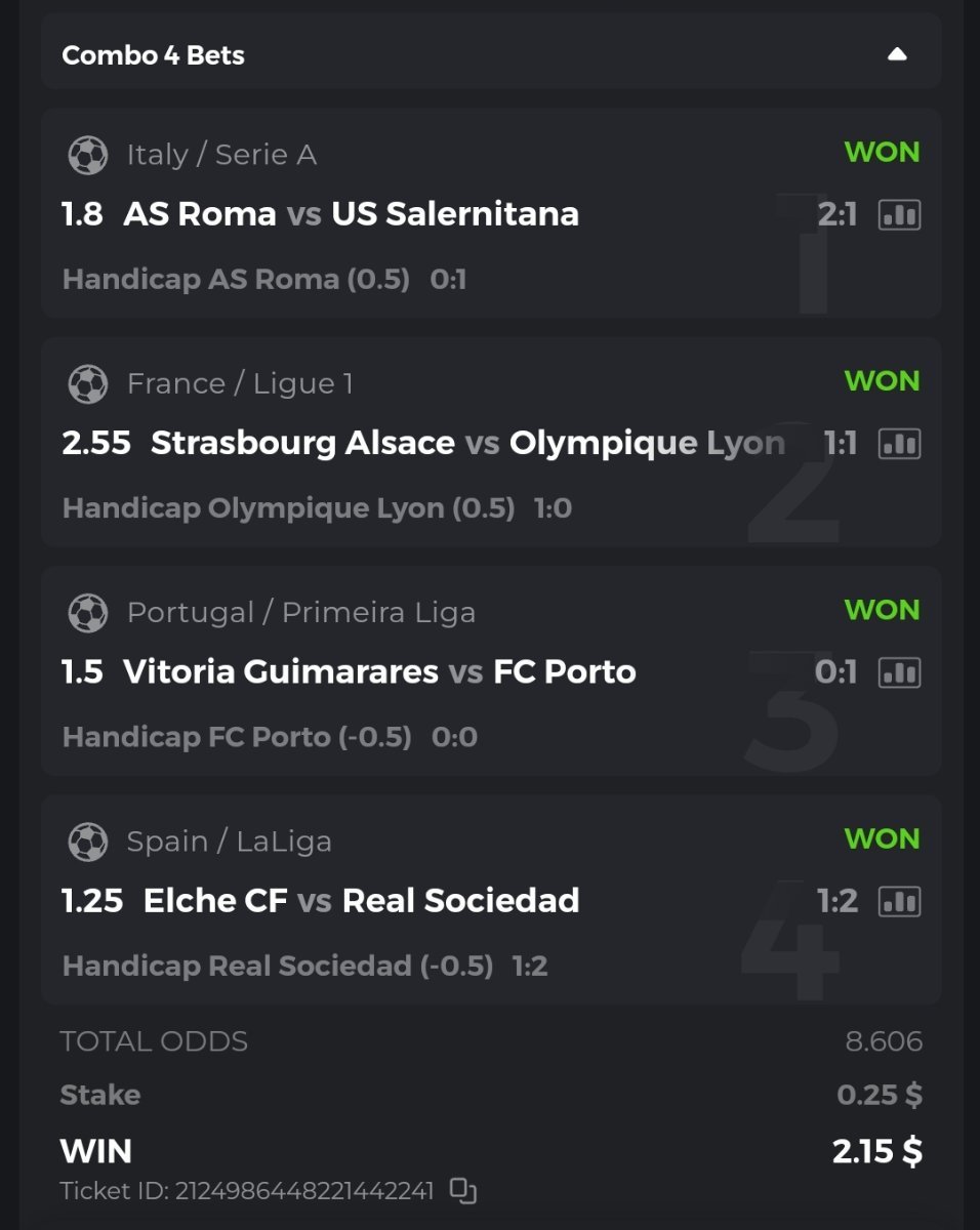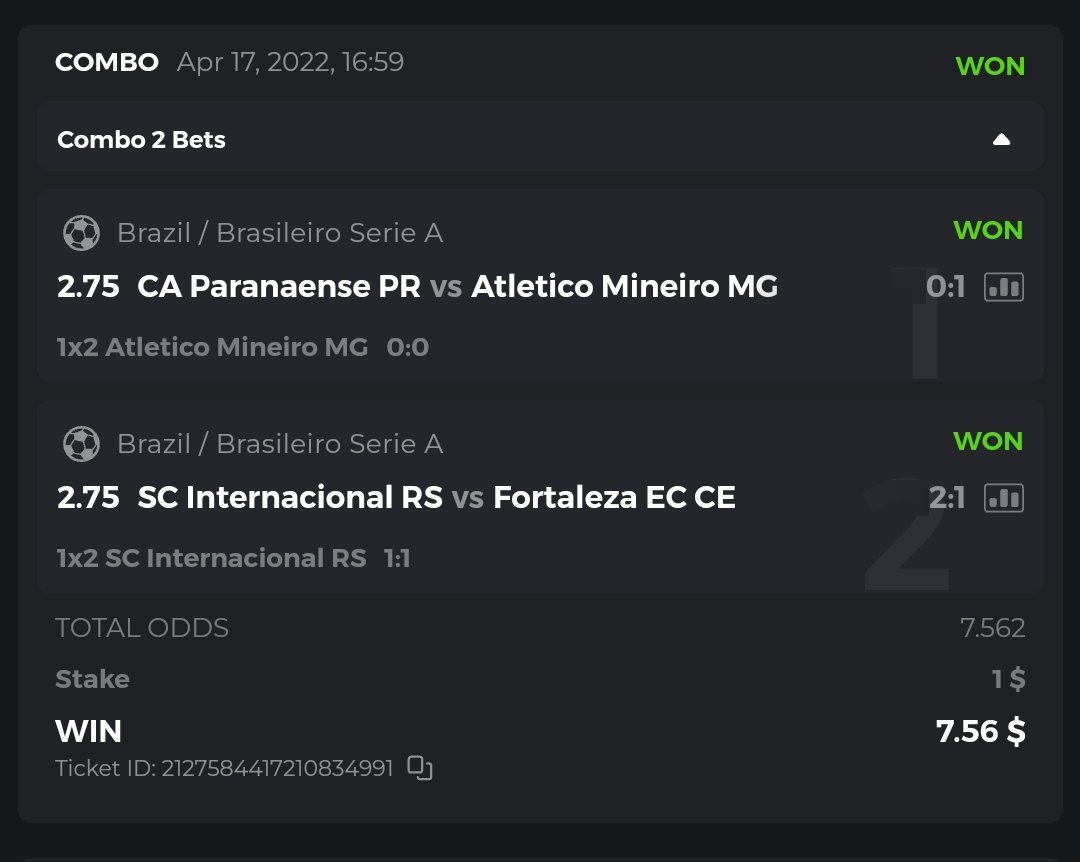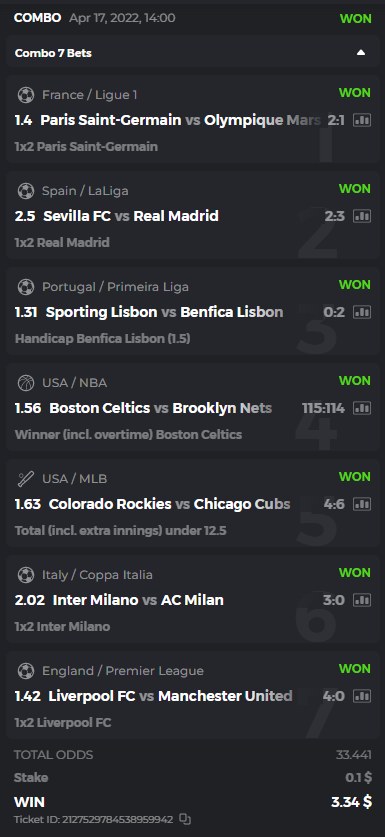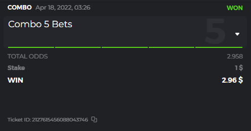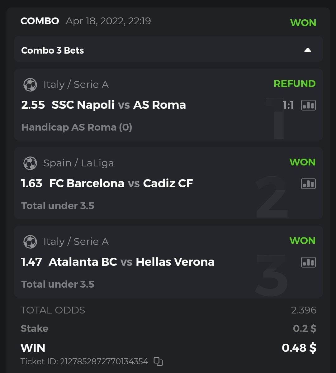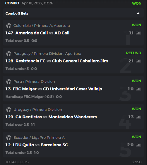 I posted the bets placed but open, not won, so I deleted them