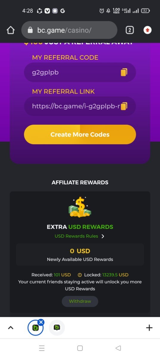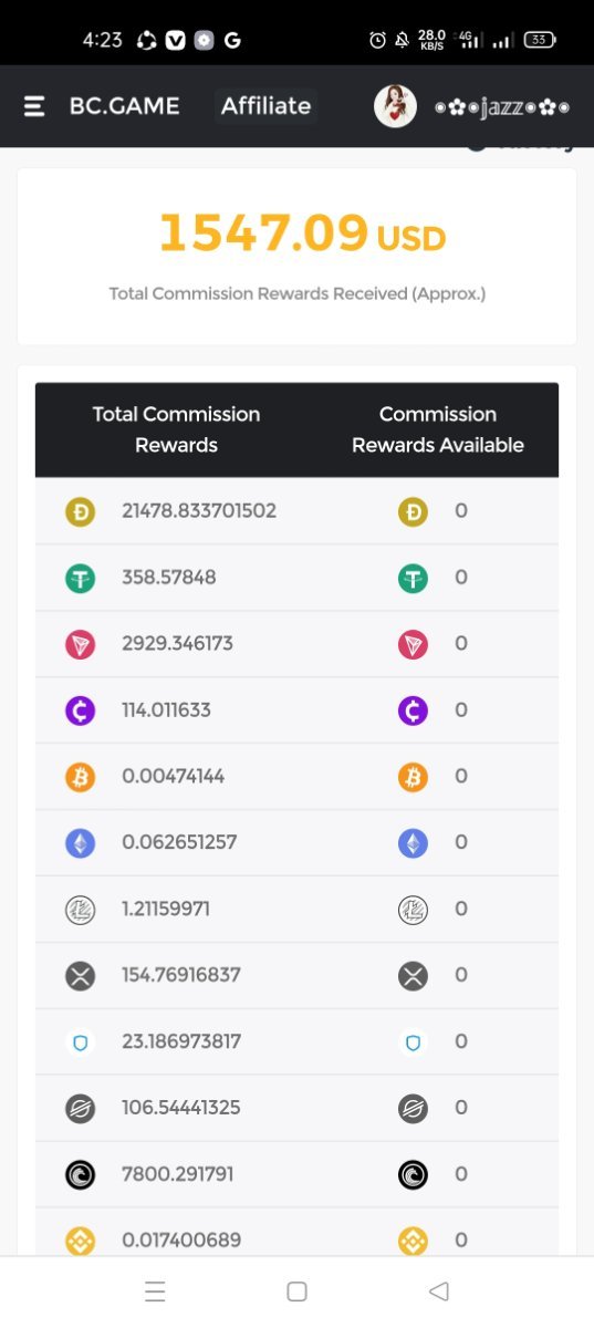 I had 500 plus referrals but only 136 of them remained active. I got 1, 547$ referral commissions and 101$ extra USD rewards and still counting... 😍