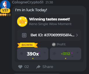 Javie Posted June 13, 2022 Share Posted June 13, 2022 I got two amazing moments: the first, thanks to bcgame I've met a wonderful friend of mine, also gambler and cuban like me, our friendship remains although he's not gambling anymore the second one is one day that I deposited 23 bucks in bnb and withdraw 298 because of two hits in a row in slots, which I love the most to play along with dice and keno. Gambling is entertaining if you control yourself, and bcgame has the best chat in all crypto casino, so it's a place to make friends add to have a real nice time playing, enjoy gambling mates but always safe. Congrats bc.Game!!! Link to comment Share on other sites More sharing options...
